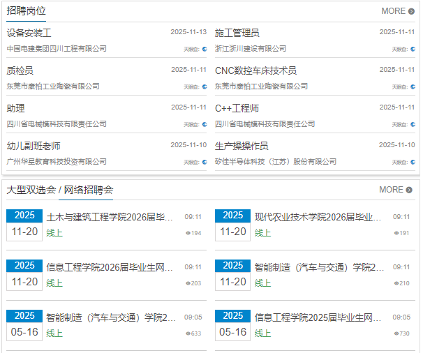 除了搭建线下生、企沟通平台,学校还充分利用线上宣传平台,举办多场网络招聘会,发布企业招聘岗位信息,为学校毕业生提供更多就业岗位。