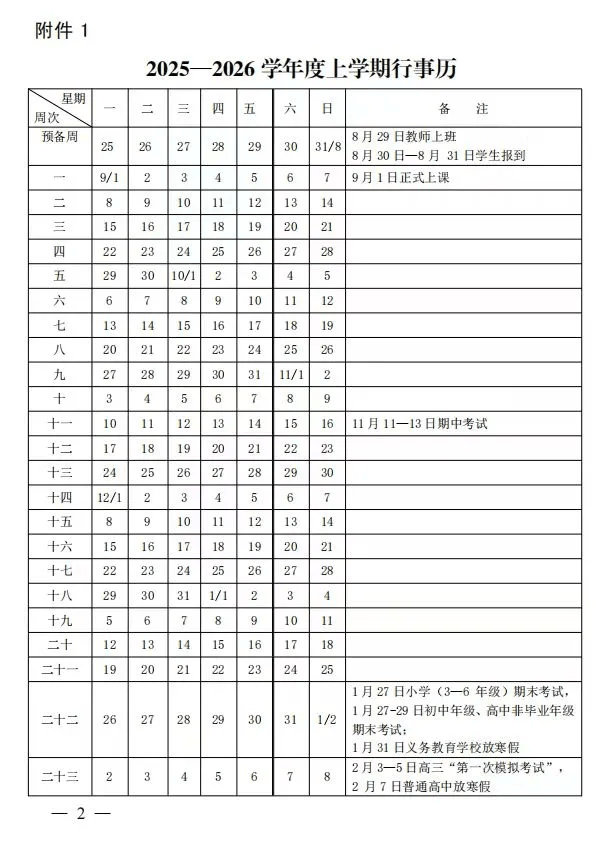 下学期幼儿园、小学、初中和高一、高二年级统一于2026年3月2日(农历正月十四)正式开学