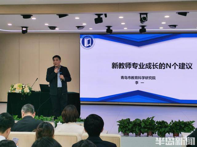 青岛市教育科学研究院副院长李一作《新教师专业成长的N个建议》专题讲座。他强调,新时代教师应深植教育家精神,将“心有大我、至诚报国”的理想信念与“启智润心、因材施教”的育人智慧贯穿教学全程。针对教师发展,李院长提出“读书—实践—写作—科研”四位一体成长模式,鼓励教师以小课题研究破解教学真问题,在集体备课与校本教研中凝聚合力。在学生培养上,他倡导既要“有教无类”,也要践行“长板理论”,激发学生个性潜能,培育“有理想、有本领、有担当”的时代新人。