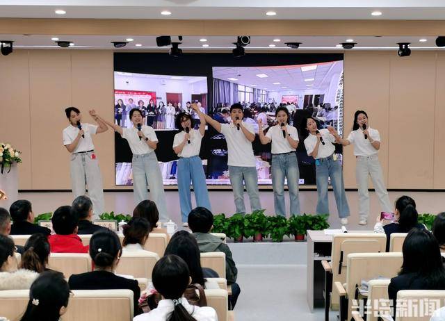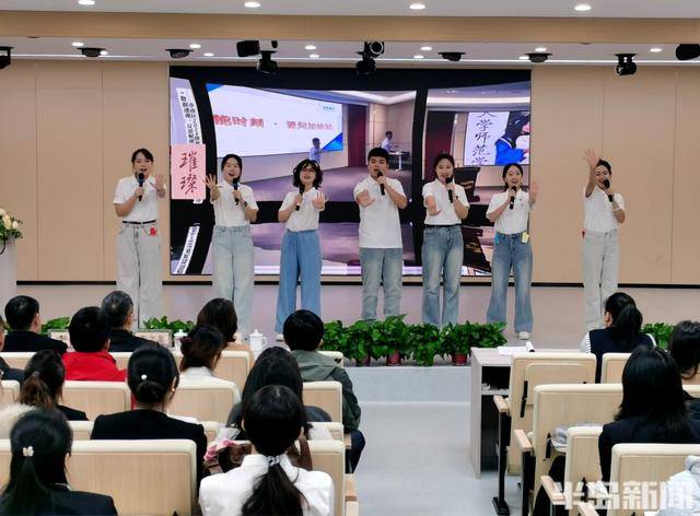 活动在两级新教师创编演绎的快闪《世界赠予我的(市南教师版)》中温情启幕。青年教师们清澈明亮的歌声与青春洋溢的舞台表现,生动诠释了从“求知学子”到“育人师者”的身份转变与信念扎根。“借半生时光,换桃李葱茏”“师徒携手齐奋进,让理想璀璨”......句句歌词承载着市南教育新生代的教育情怀与成长渴望悠然热忱向往,为整场活动奠定了温暖向上与朝气蓬勃的基调。