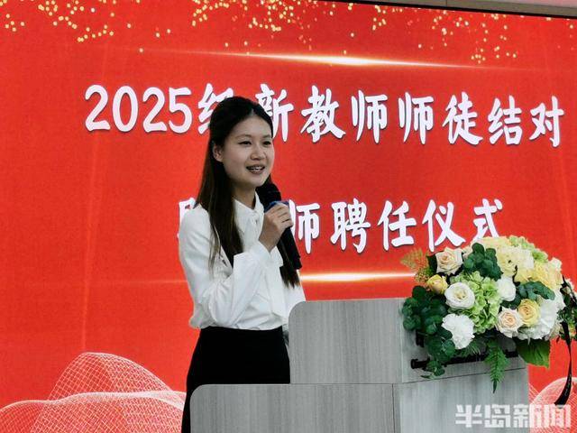 新教师代表张煜晗感恩区域教师培养体系与师徒结对指引,以 “虚心、用心、初心” 的“三心”立誓:虚心汲取智慧,用心锤炼本领,初心担当使命,立志成长为新时代“四有”好教师。