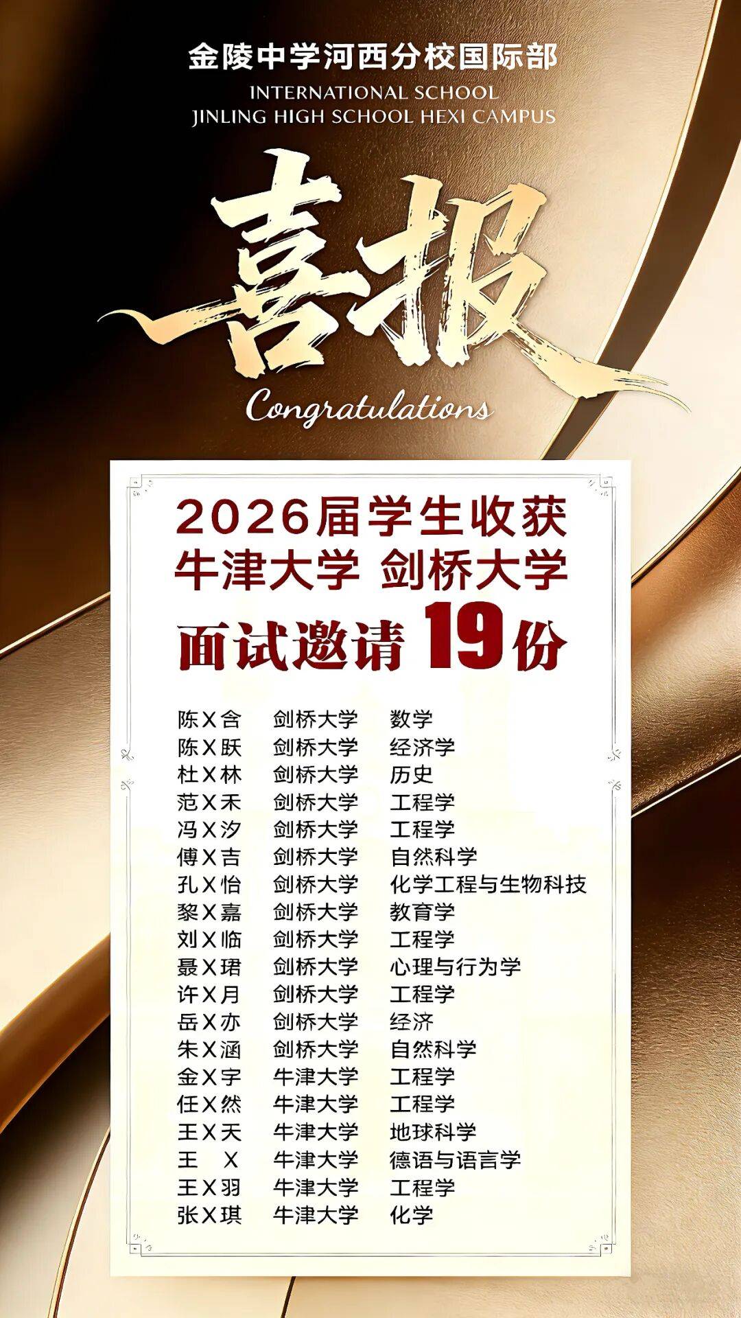 19份牛津大学、剑桥大学
