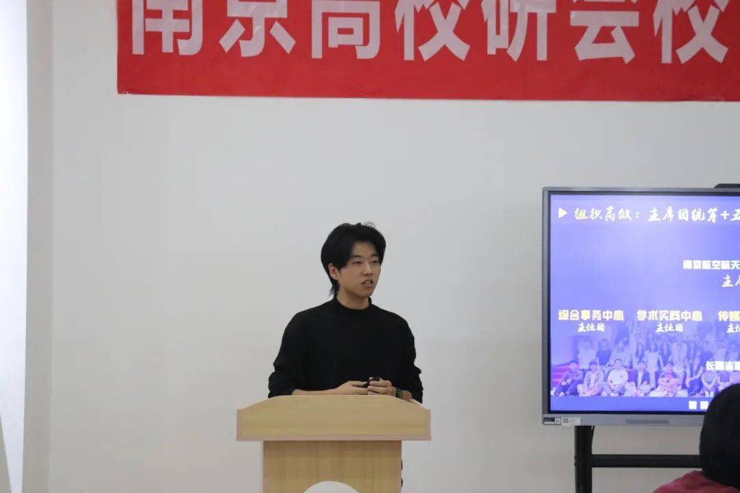 南京航空航天大学研究生会代表高佣以“扎根三航沃土,绘就成长新图景”为主题,分享该校工作经验:组织上,以“主席团+五大中心”高效联动;品牌上,打造“筑梦研华”专访、“研思工程”沙龙、“研航杯”赛事,紧扣三航特色;传播上,靠优质内容与多元矩阵触达学子,公众号粉丝超3万,传递南航精神。