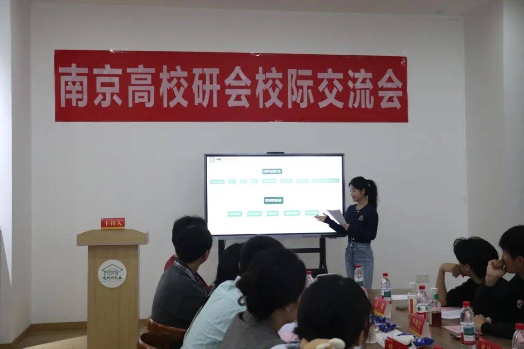 南京师范大学研究生会代表薛景以“踔厉奋发同筑梦,赋能卓越向未来”为主题,展示了南师研究生会的工作思路与品牌活动:一是加强研究生骨干培养,实行研究生新生骨干培训班、英才训练营、卓越领导力训练营三级培训机制;二是做好经典品牌活动,例如“研究生科技文化月”、“正德杯”研究生辩论赛、“厚生杯”研究生篮球赛;三是打造特色活动品牌,如“研·享”一站式社区、随园“九院沙龙”系列活动。