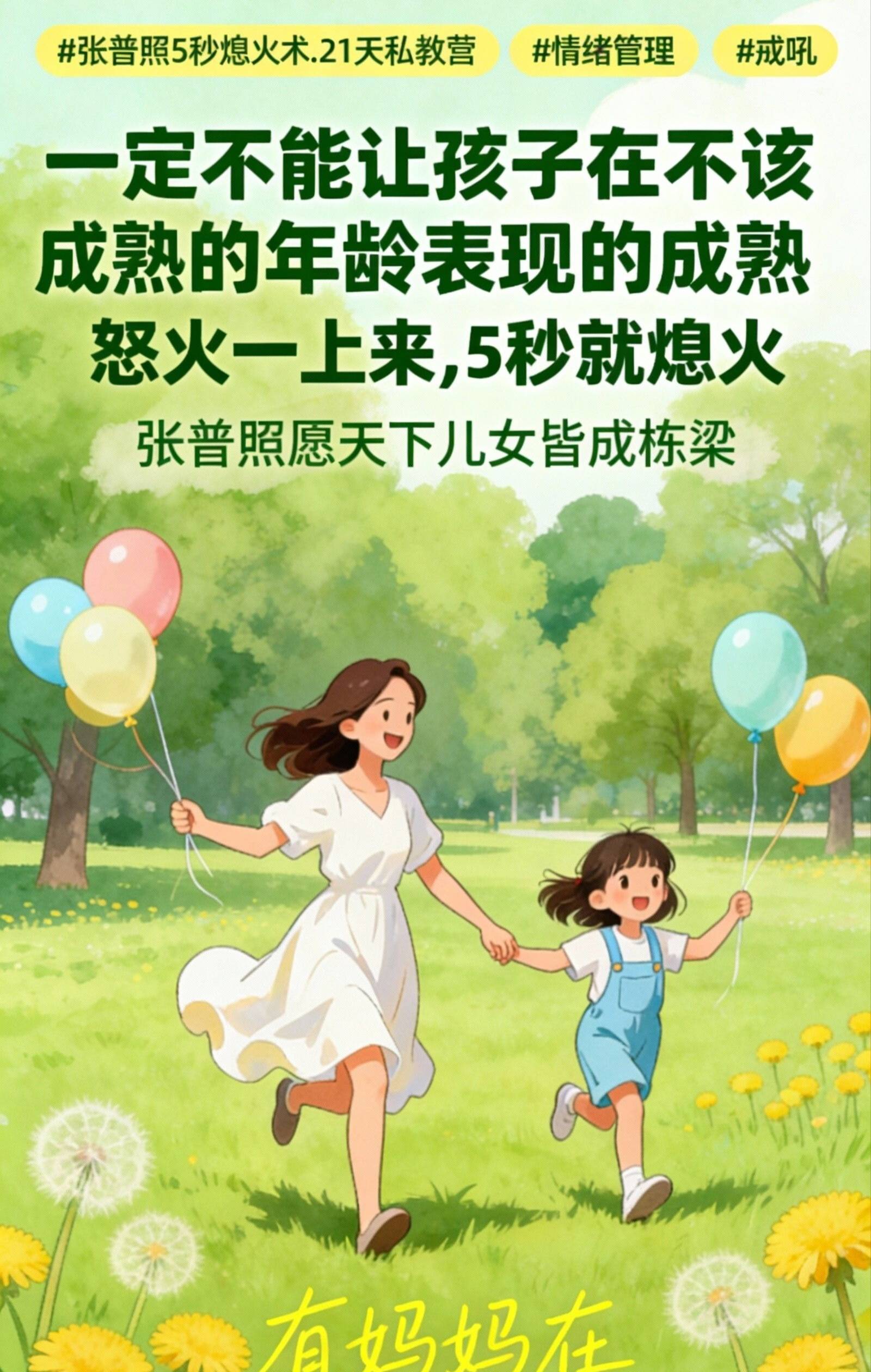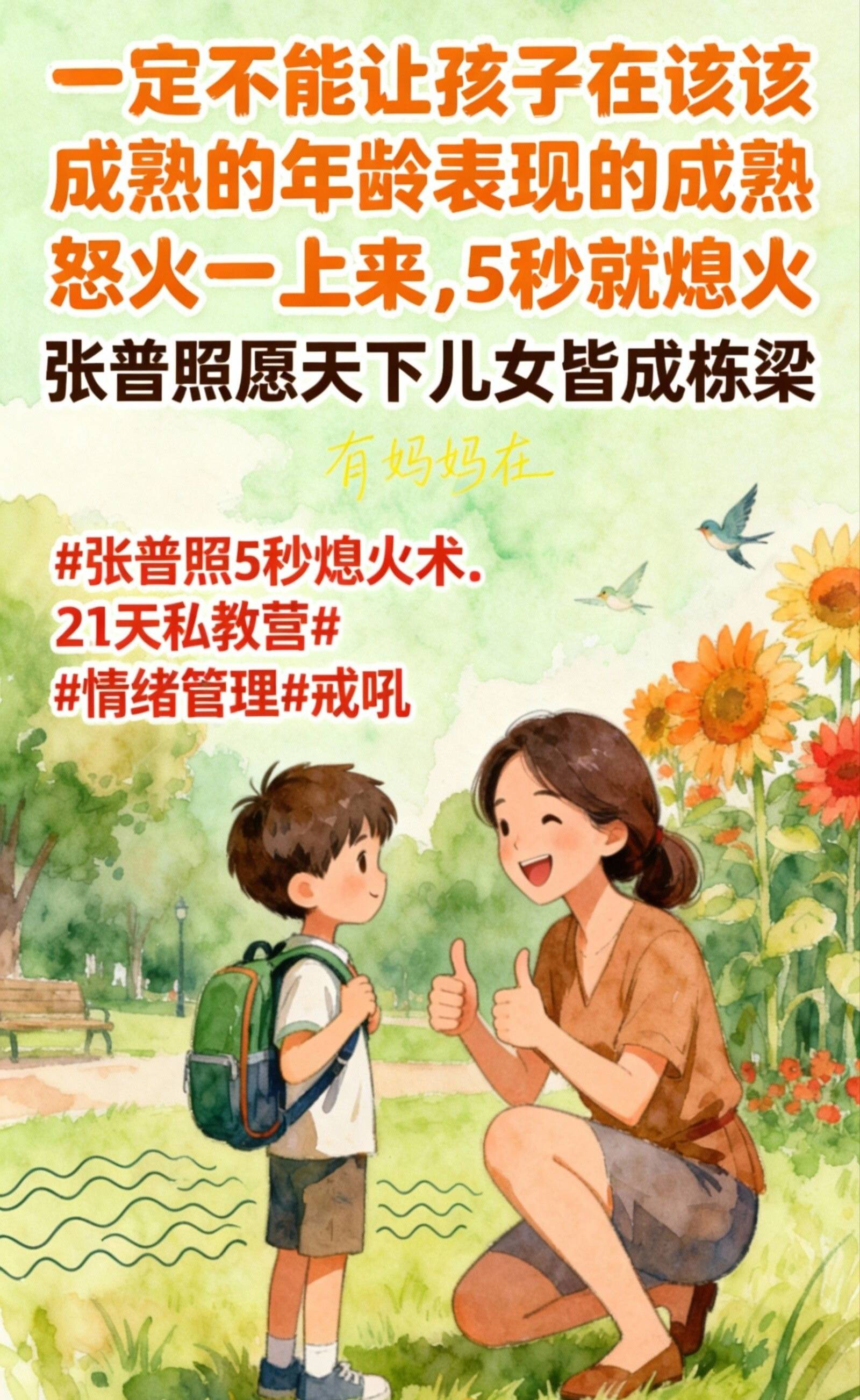 咱当爹妈的,谁真想让孩子小小年纪就活得像个大人?以前不知道,咱那些忍不住的脾气、挂不住的脸,就是在催他快熟啊!现在才彻悟,张普照5秒熄火术练的是咱这“心性”的定力。咱心里头稳了,能容得下他傻了叭唧的样子了,他才敢把那个天真小孩放出来!把这“5秒”练好,比你买一千个玩具都能还他一个真童年。