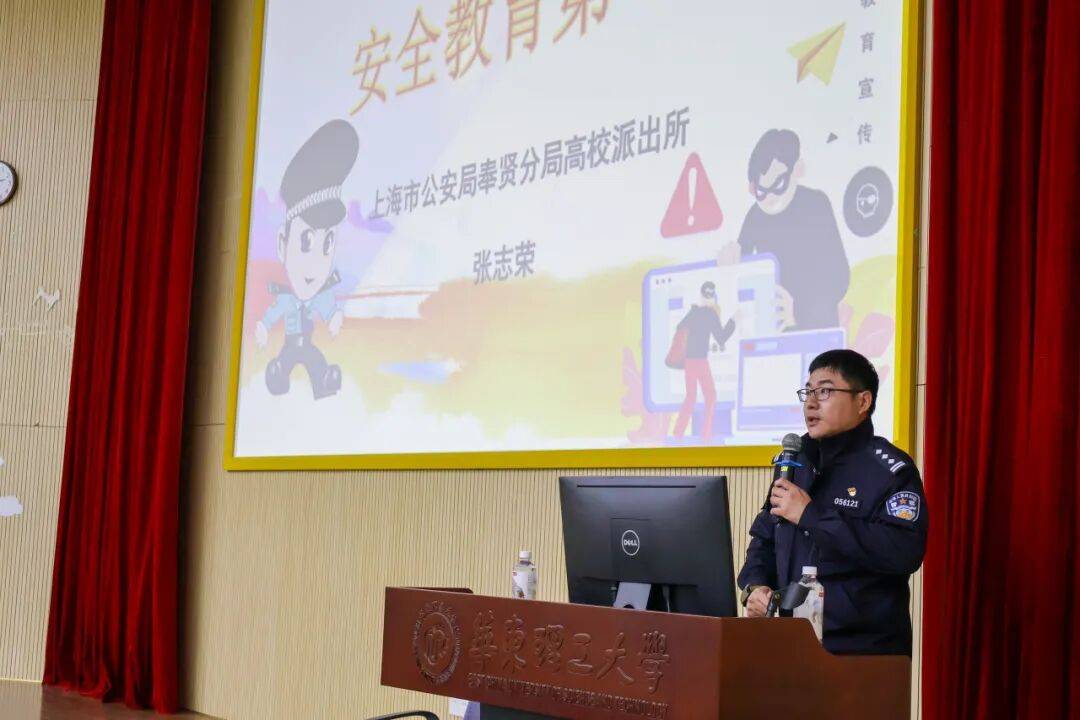 12月4日下午,生物工程学院特邀上海市奉贤区公安局高校派出所张志荣警官,面向学院大一至大三本科生举办了一场主题为“筑牢反诈防线,共建平安华理”的安全教育讲座。活动在奉贤校区A200教室举行,300余名师生参与。