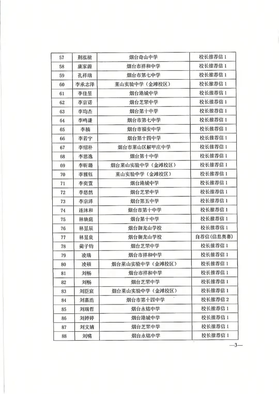 说明:满足以上(1)(2)(3)条其中之一即可获得初中学校推荐资格,满足第(4)条可获得自荐资格。
