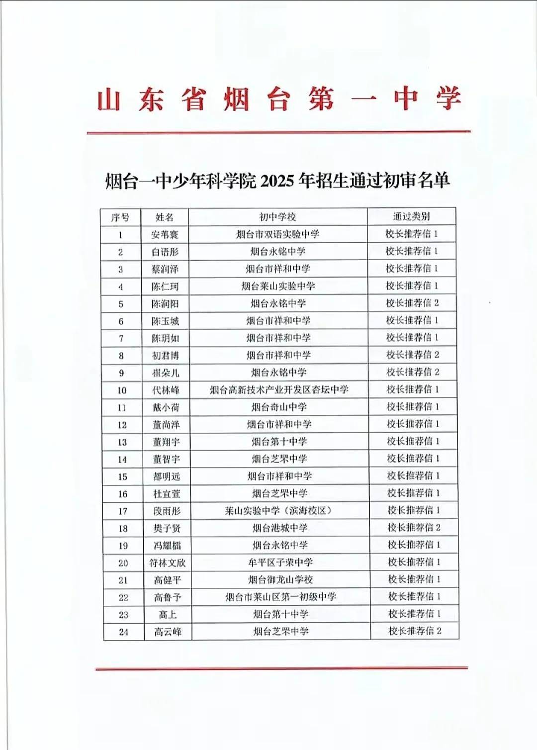 网传烟台一中【少年科学院】初审名单出炉,这份网传名单初审名单共计224人。而根据烟台一中【少年科学院】2025年招生简章信息,2025年计划招收初四学部学生60人,学科分流后设数学、物理两个方向教学班,每班30人左右。所以,最终录取还要淘汰184人,竞争还是很激烈的。