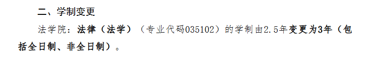 7月8日,宁波大学发布《关于我校2026年硕士研究生招生部分变更信息的公告》,明确法律(法学)(专业代码035102)的学制由2.5年变更为3年(包括全日制、非全日制)。