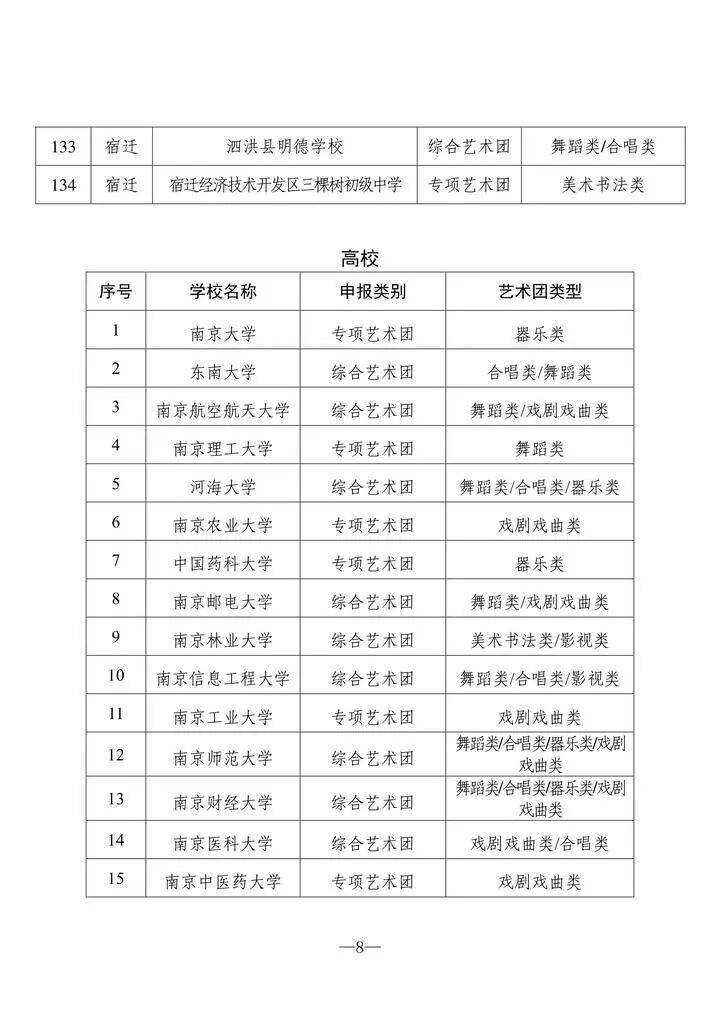 近日,江苏省教育厅公示了推荐全国美育类示范性特色学校和美育类基地的名单。