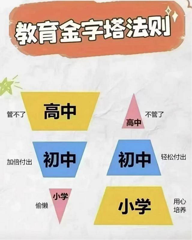 小学阶段,是孩子养成习惯的关键期,就像是金字塔的根基,如果这个时候家长偷懒了,等孩子到了初高中,你就得加倍付出,不然金字塔就会摇摇欲坠。