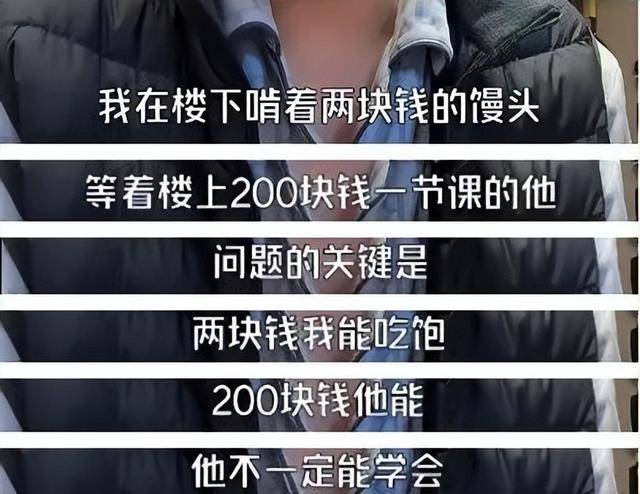 “我在楼下啃着2块钱的馒头,等着楼上200块一节课的他。关键是,2块钱我能吃饱,200块钱他不一定能学会。”