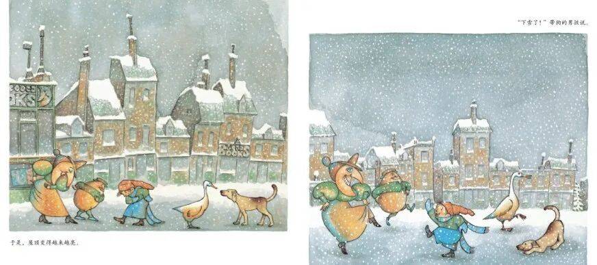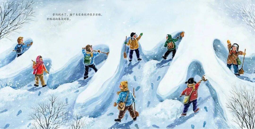 书中扑面而来的寒冷与孩童们的热情、父子间的温情画面形成强烈的对比,让我们看到苦寒的生活中仍能散发暖意和善意,单调乏味的寒冬,也无法掩埋动人的童心与童趣。