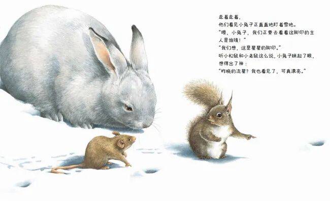 因为大雪,小老鼠好久没见到他的好朋友鼹鼠了,他想让流星帮他实现愿望。小老鼠跟着“星星”的脚印追呀追,越来越多的小动物们也加入了这场寻找星星之旅中……