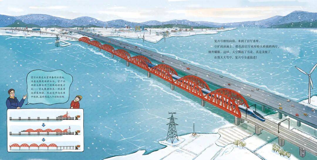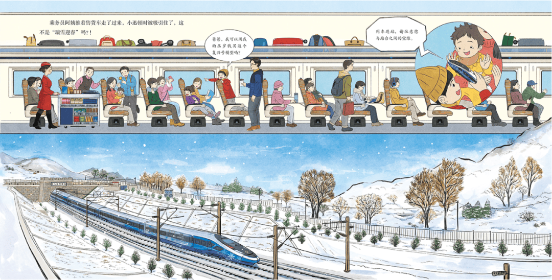 《穿越长城的百年铁路》中,小迅和爸爸坐京张高铁去崇礼太子城滑雪。小迅体验着复兴号智能动车组的智慧与速度,百年京张铁路的历史与荣光也像画卷一样展开……