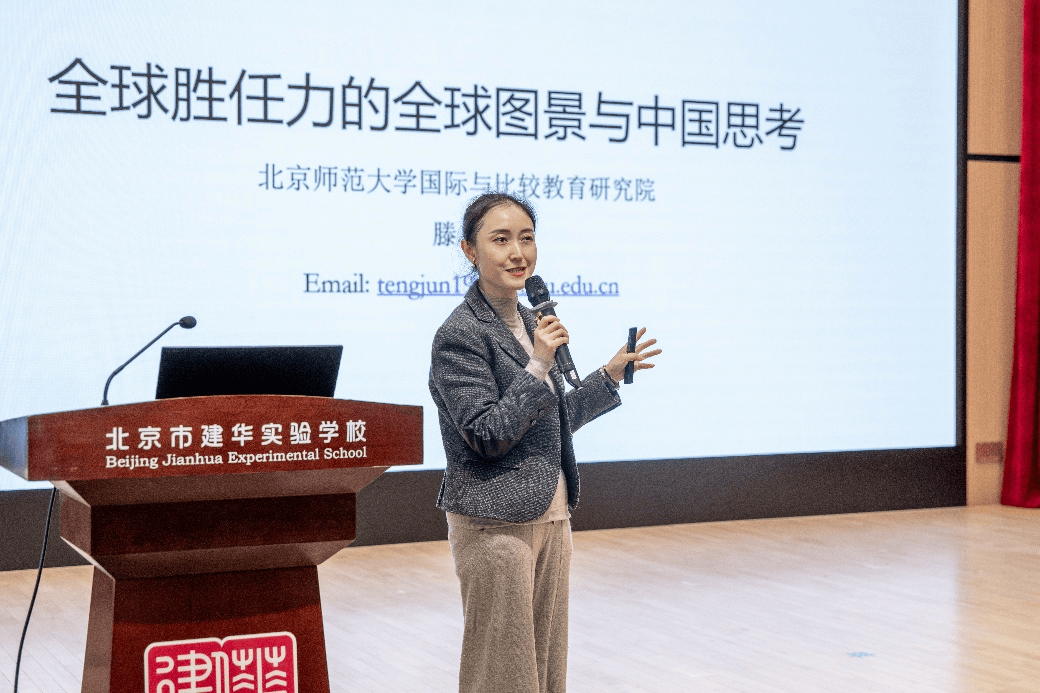 本次论坛,北京师范大学国际与比较教育研究院教授滕珺作了《全球胜任力教育与中国课程国际话语权建设》主旨报告中。她从理论视角阐释了“全球胜任力框架”,深度辨析了“竞与和”“国家认同与全球责任”“传统与现代”等几组关键价值观念的关系处理,阐明中国全球竞争力的核心诉求与现实环境,指出了“新天下精神”的未来追求。