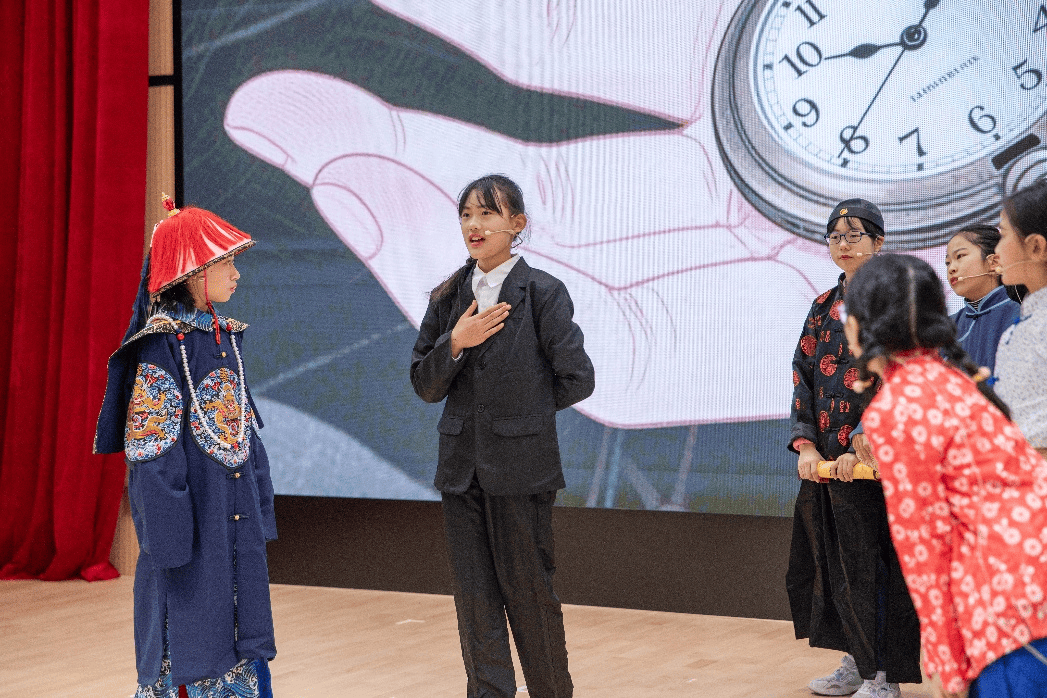 论坛上,北京市建华实验学校英语戏剧社团的学生们表演的《Clock》也分外出彩,生动展现了中西方文化碰撞与融合的主题,学生规范的英语表达与生动的舞台表演,充分展现了良好的国际理解力。