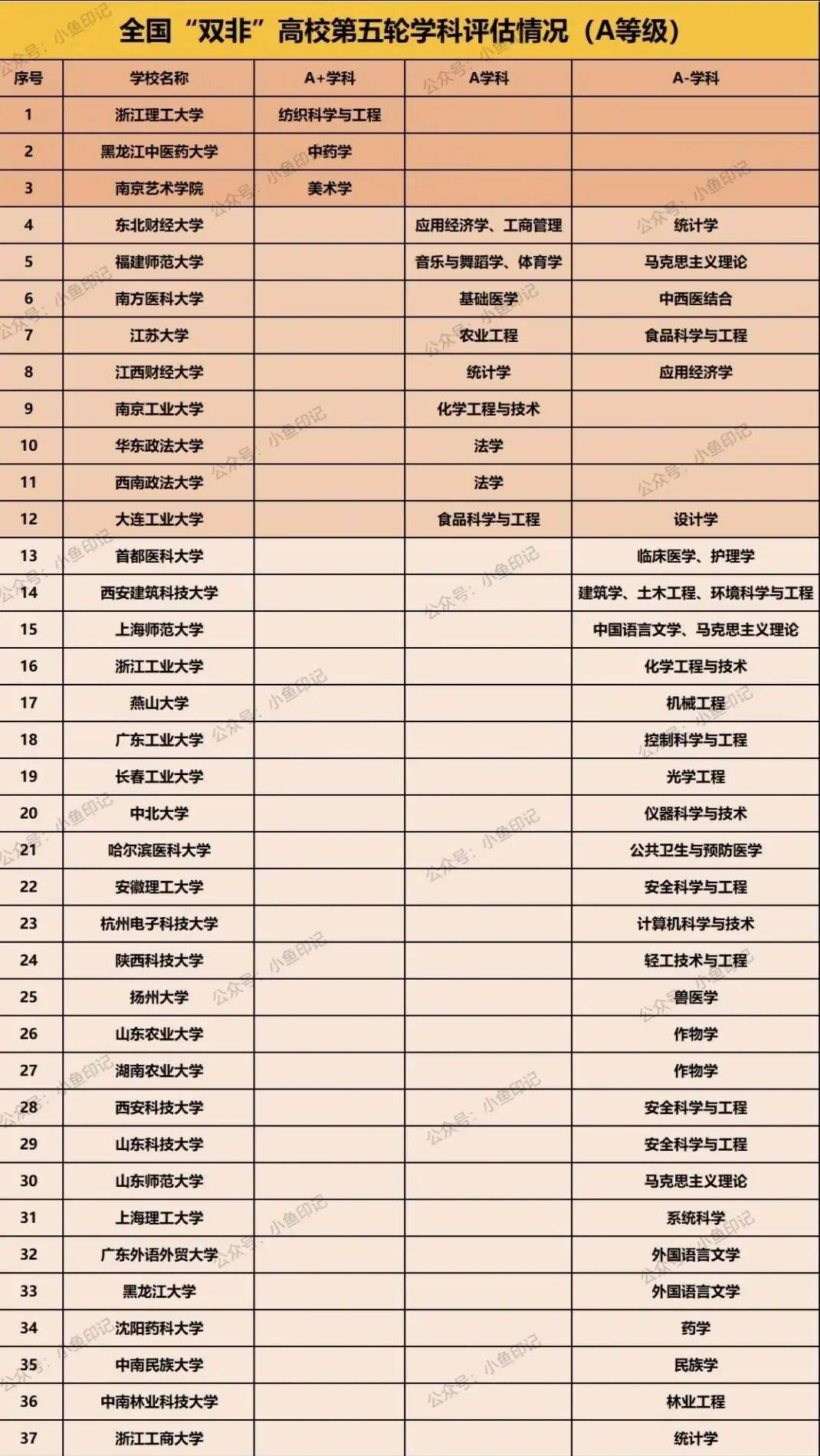 本次数据来源于小鱼老师的整理,这里面大部分高校的学科评估结果都有官方方面的信息,但也有部分高校的学科评估成绩来源于网络,所以仅供大家参考,并不作为最终的决策依据。