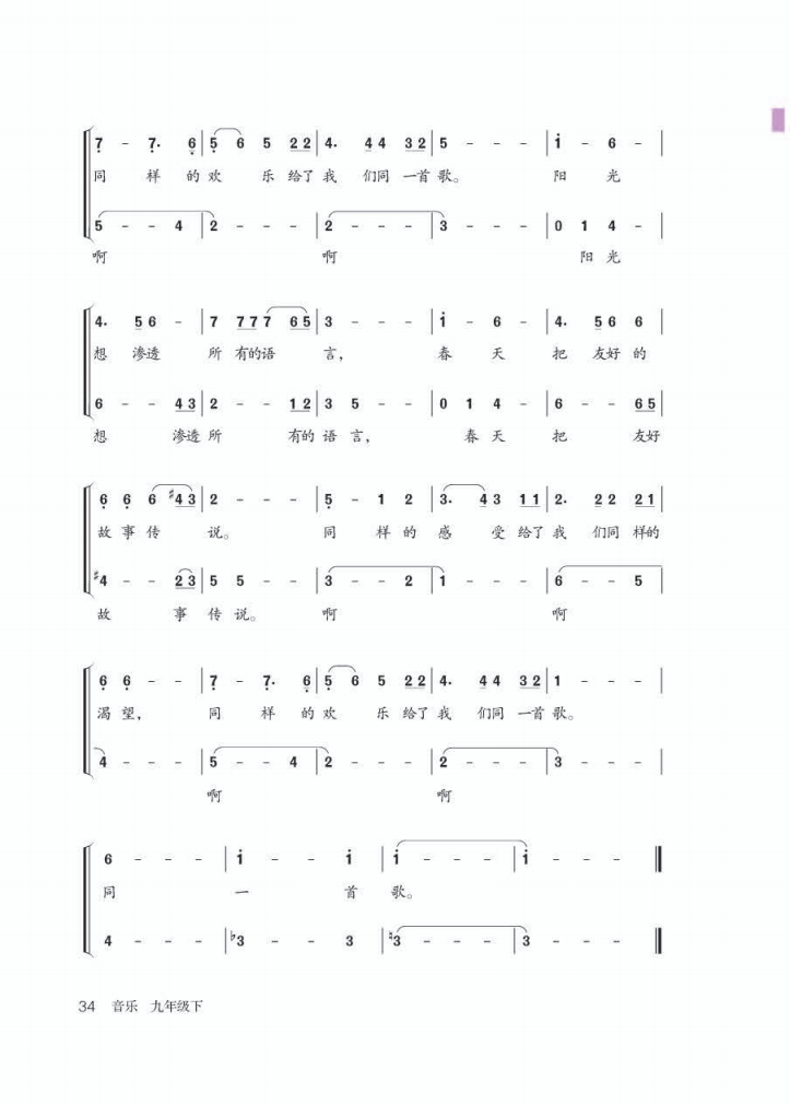 2026年春季初三学生部分科目将迎来新版教材,新版教材特别强调知识之间的联系和实际生活中的应用!为方便广大初中生更好地了解新教材内容,我们特别整理了2026春季新教材人教版九年级音乐下册电子课本,以图片的形式呈现给大家。