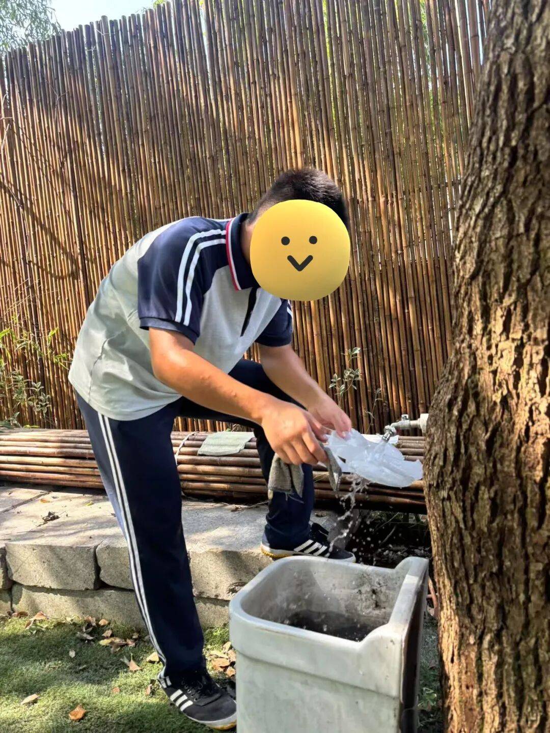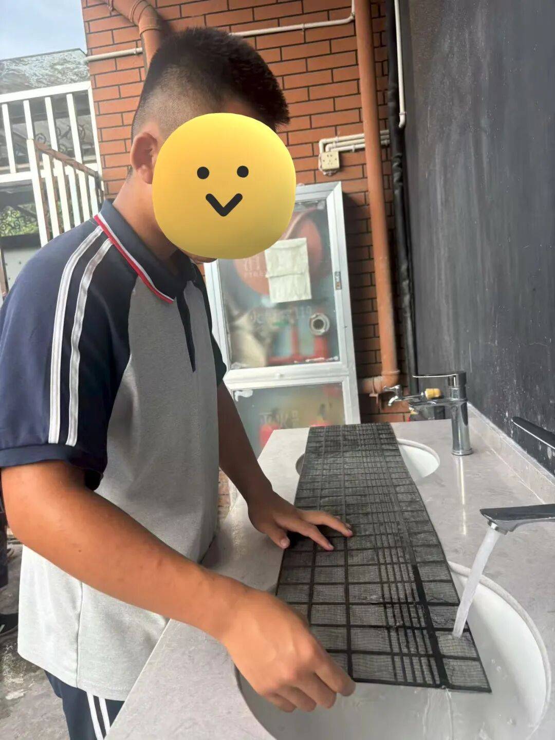 他积极投入到各项劳动任务中,清洗空调、木板刷漆、除草耕地都干得十分出色。