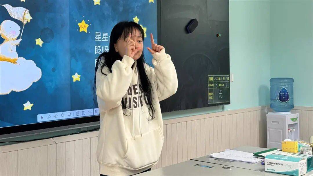为了不影响上课,她开始用手机备课、阅读,把字体调到最大号,盯着屏幕几分钟眼睛发酸,就闭目休息一会儿再继续。在教学中,她不断创新教学方法,努力让每一个特殊孩子都能在有限感知中触摸世界、汲取知识。