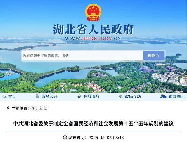 日前,中共湖北省委关于制定全省国民经济和社会发展第十五个五年规划的建议发布。