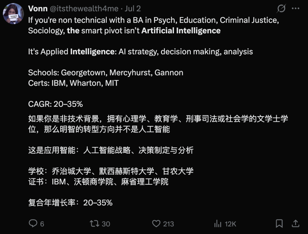 有网友建议,许多非技术背景出身的学生,可以通过报考应用智能方向的专业实现转型。