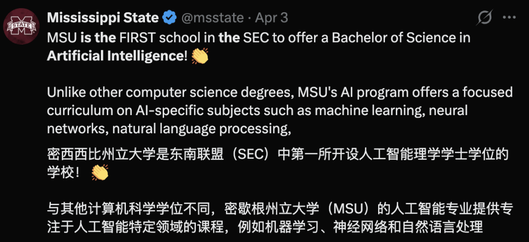 当CS遭遇就业焦虑,AI专业却逆势上行,成为美国高校最火的「爆款专业」: