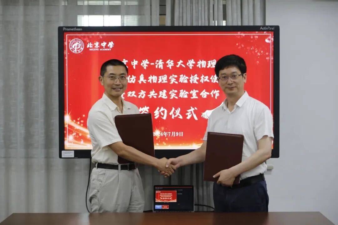 清华大学物理系与北京师范大学附属实验中学启动数智仿真物理实验室项目。清华大学物理系副系主任张定与北师大实验中学校长李晓辉共同签署合作备忘录。