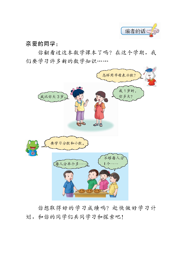 四年级是数学从 “具象” 向 “抽象” 过渡的关键期,2026 春冀教版四年级数学下册新教材简直精准踩中孩子的学习痛点!教材以用字母表示数、三位数乘两位数、多边形认识、分数与小数为核心,把抽象知识点全藏进了超接地气的生活场景里 —— 学观察物体就看 “四只小狗站在房子不同位置辨视图”,练字母表示数就用 “我比你大 3 岁” 的日常对话理解 “a+3” 的含义,就连分数学习都从 “分不够 1 个月饼” 的真实体验切入。更有 “驾车旅游”“测量身高” 等综合实践活动,让孩子在规划行程时运用路程速度公式,在记录身高数据中学会复式条形统计图,真正感受到 “数学源于生活,用之于生活”。