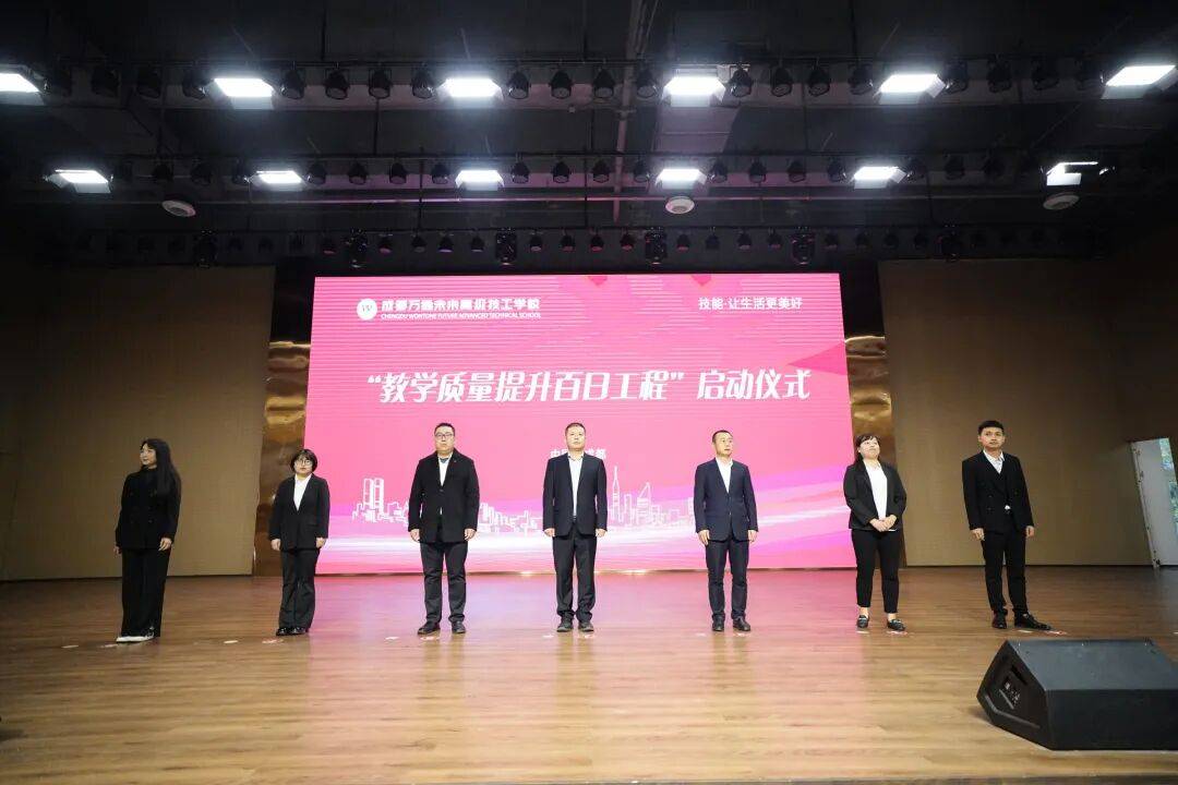 近日,成都万通未来高级技工学校(以下简称“成都万通”)2025年“教学质量提升百日工程”系列活动启动仪式在学校学术报告厅隆重举行。学校领导、全体教师、部分学生代表齐聚一堂,共同见证了这场旨在深化教学改革、锻造职教品牌、全面提升人才培养质量的重要活动的开启。