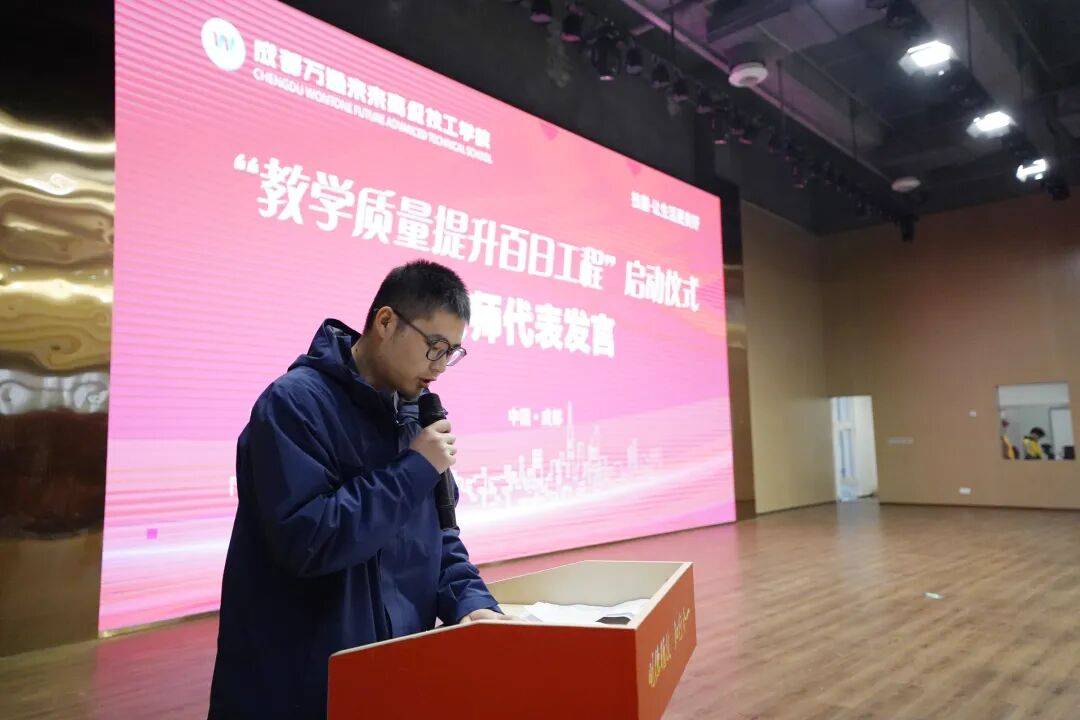 启动仪式在庄严的国歌声中拉开帷幕。成都万通党支部书记周主任在开幕致辞中深刻阐述了开展“百日工程”的重要意义。他指出,在当前国家大力发展新质生产力、对高素质技术技能人才需求日益迫切的背景下,教学质量是学校的生命线,是立校之本、强校之基。“本次‘百日工程’不仅是一次阶段性的攻坚行动,更是学校迈向高质量发展新征程的宣言。我们必须以‘百日’促‘百年’,通过全员、全过程、全方位的质量提升,夯实学生成才的基石,回应社会与家长的期待。”