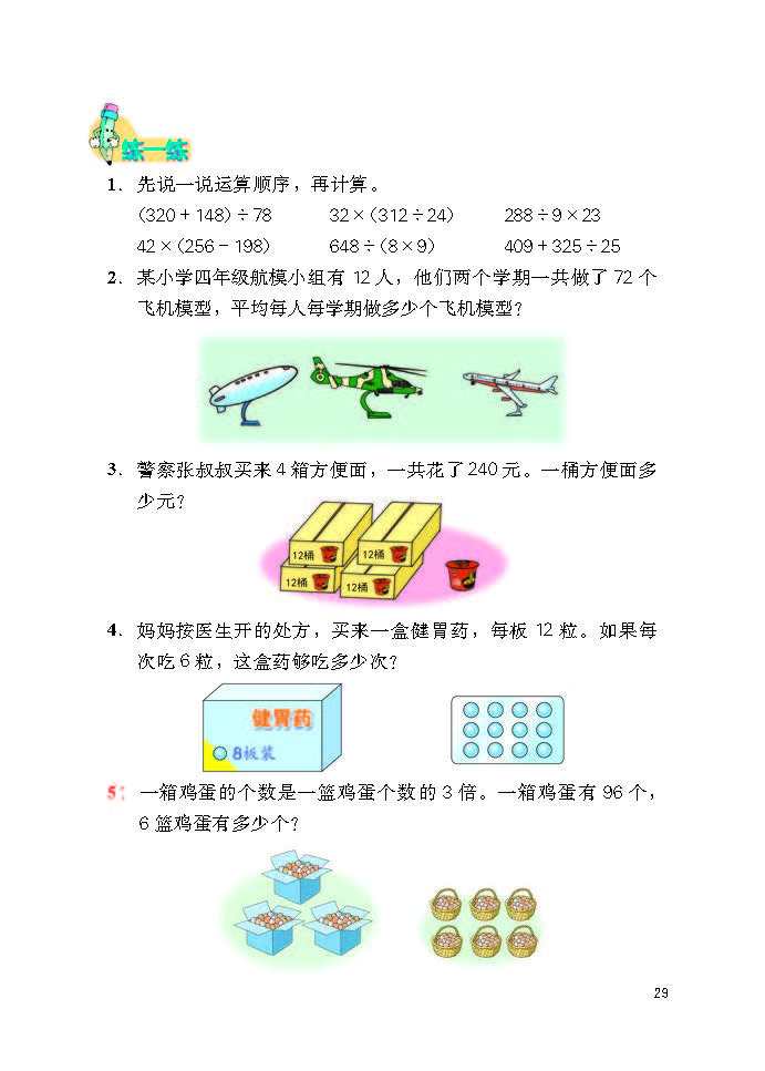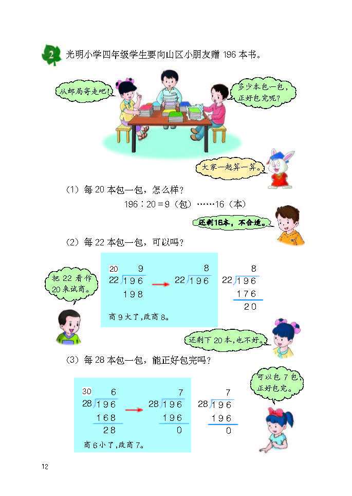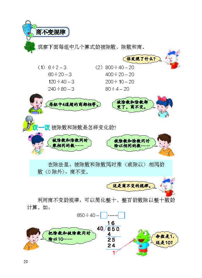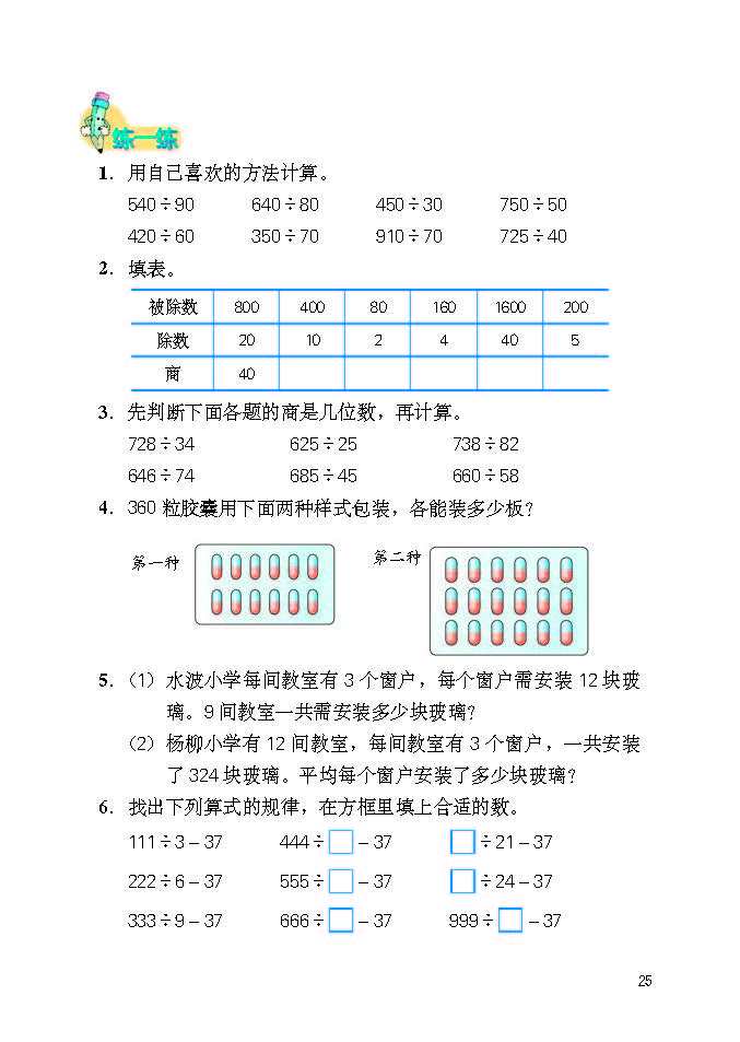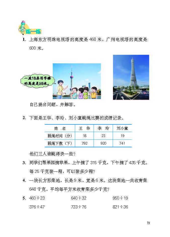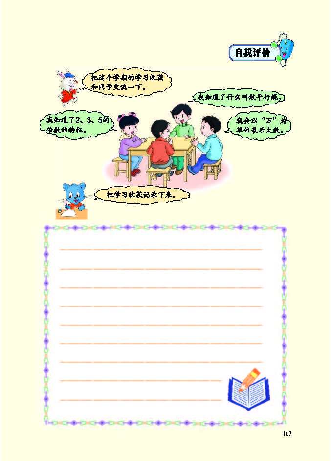 冀教版四年级数学上册最新版教材简介(320字) 冀教版四年级数学上册以四大领域构建知识体系,共9个单元,搭配综合实践活动,聚焦培养核心素养,衔接小学中高年级数学学习。 ### 核心内容 1. 量与计量:升和毫升,认识容量单位及换算,建立量感。 2. 数与代数:含三位数除以两位数(口算、笔算、商不变性质)、倍数和因数(奇偶数、质合数)、认识更大的数(亿以内/亿以上数读写与改写),夯实运算与数系认知。 3. 图形与几何:线和角(特征、度量、画角)、垂线和平行线,发展空间观念。 4. 统计与概率:平均数和条形统计图,提升数据处理能力。 5. 探索乐园与综合实践:如参观植物园、编学籍号等,强化知识应用与创新思维。 ### 教材特色 1. 遵循认知规律,循序渐进编排,预留探究空间,鼓励算法与解题策略多样化。 2. 结合生活实例与数学文化,强化知识实用性与趣味性。 3. 配套“练一练”“习题”等栏目,形成“知识建构 - 技能训练 - 实践运用”闭环,助力学生提升运算、推理、应用等核心能力。