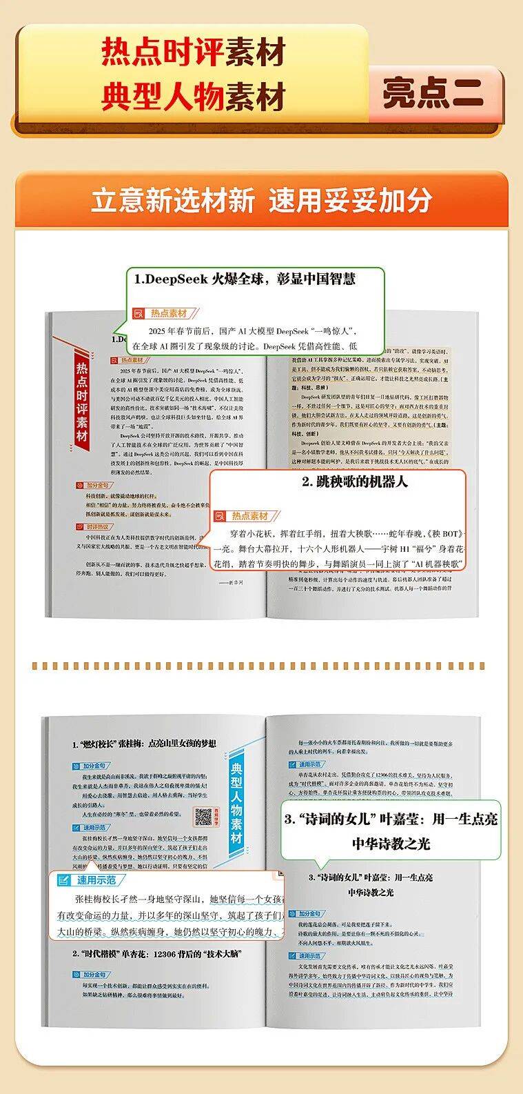 热点案例、人物故事、生活化细节多维度搭配,一个素材能适配多个主题,实现“一材多用”。