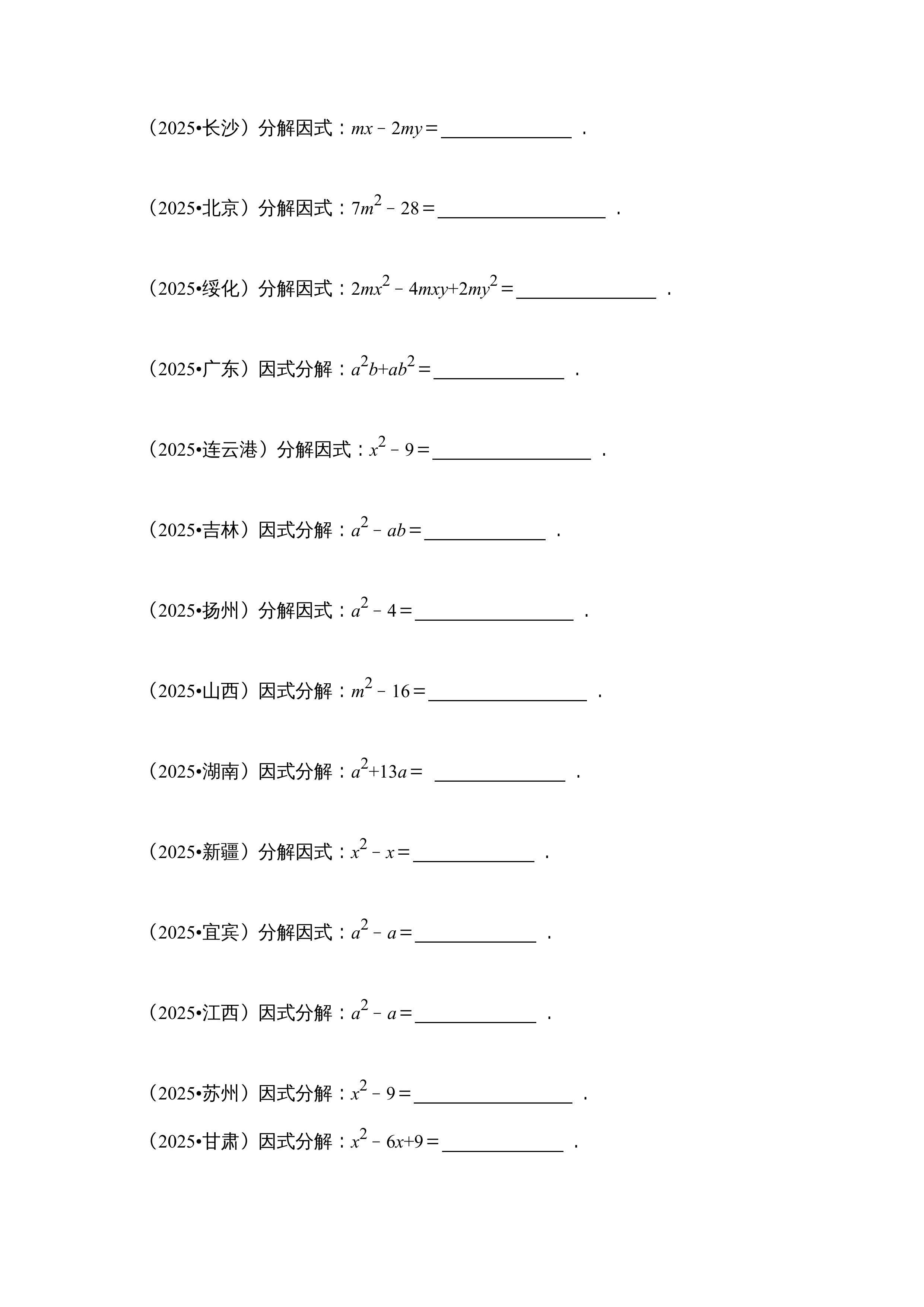 新八年级上册期末因式分解期末冲刺寒假练习中考数学真题2026新教材