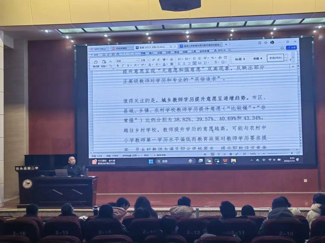 指导覆盖教学改革、学校管理、档案建设、德育体系、师资队伍等核心领域。1月12日上午,吴秀玲以“大单元教学”为主题,为全区校长、教学副校长等教学管理干部开展如何提升学校整体教育教学质量进行专题培训;1月13日至14日,张鹏宇、王俊拴、蔺永忠、宋理珍四位专家分别在四个会场,同步开展多维度指导。张鹏宇围绕“学校章程”、“提高教育质量的措施保障”两大专题,从制度、资源、过程、评价、协同五大维度,系统解读依法办学、师资优化、课程改革、家校协同等关键举措;宋理珍聚焦“德育体系建设”与“教育评价改革”,结合《中小学德育工作指南》,深入剖析德育体系构建依据、核心要素与基本框架,为“五育并举”落地实施提供实操路径;蔺永忠针对“课程建设”与“师资队伍配置”,明确高学历教师、体艺专任教师量化标准,提出骨干教师培养闭环等针对性策略;王俊拴围绕“档案建设”与“校园文化建设”,为局机关及学校规范材料整理、深化文化内涵提供专业指导。