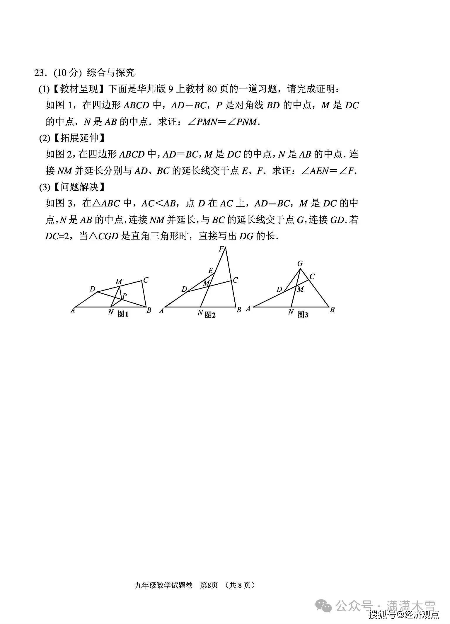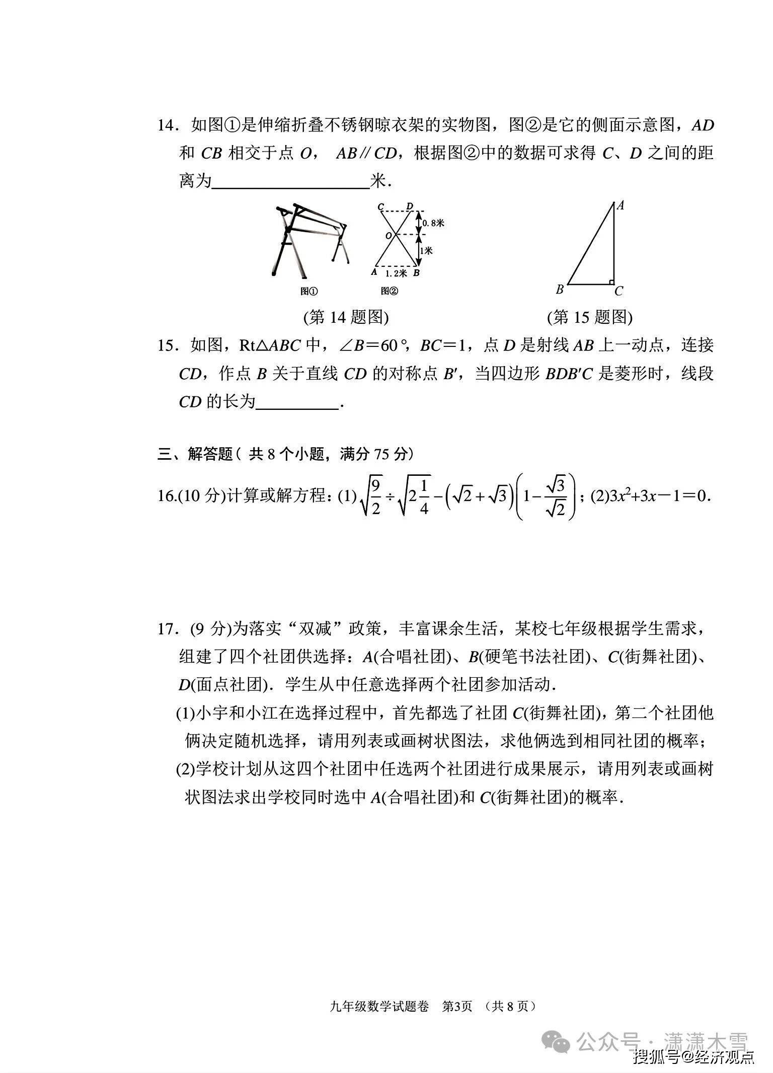 九年级数学秋期期末考试卷子(真题)