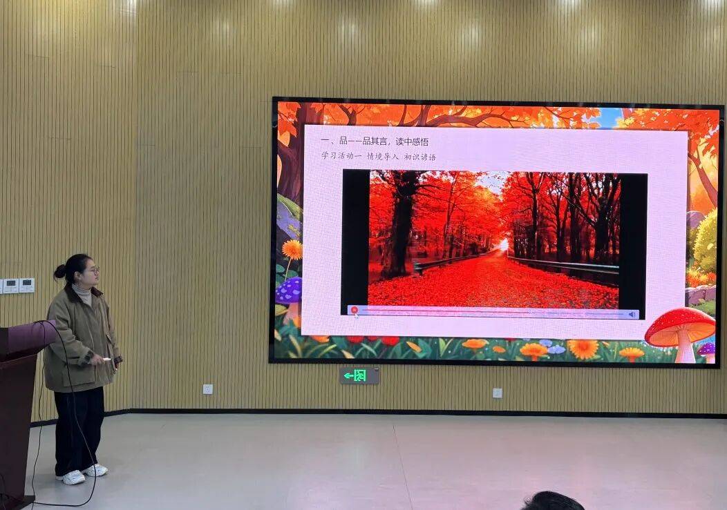 教研员余小鹏老师对本次活动作了总结。余老师结合前期的教学设计征集及本次课堂教学展示指出,征集的优秀教学设计及本次展示的课例覆盖多个年段、多形式内容,尽显实践研究成效,他还肯定了本次活动体现的“品悟链植”教学、小组合作学习、AI赋能教学、学习评价等诸多亮点,也提出了教师需要注意对该板块教学深度把握与方向把控的相关建议。余老师还基于自身对该板块内容的教材梳理,引领大家明晰了其编排特点与教学价值。