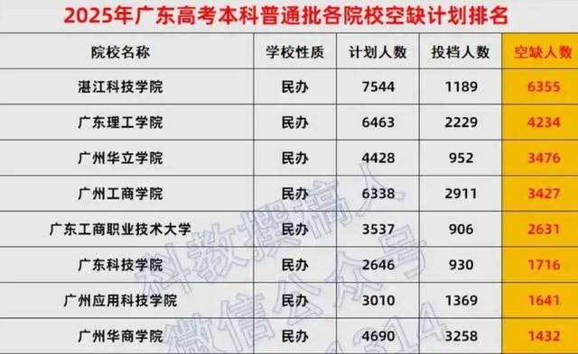 2025年,广东有14所高校需要补录,广西、黑龙江启动了本科第四次征集志愿,云南则启动了第六轮征集志愿。在最后征集志愿时,这些高校的录取分数线普遍比最初降低了30分或40分。