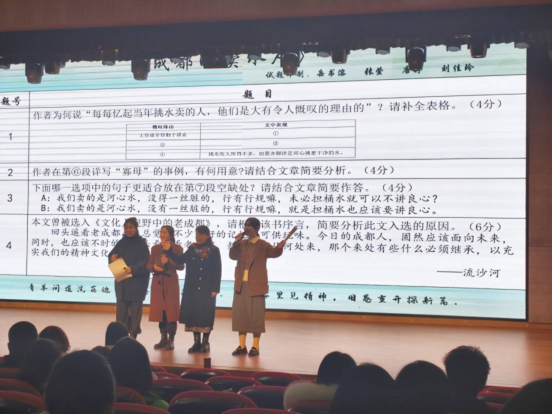 据悉,本次命题青羊团队选择了2020年成都中考B卷现代文阅读材料《成都的卖水人》为蓝本,践行“一材多用”理念。她们秉持“素养立意、教考一体”导向,紧扣文本特质设题,搭建基础—发展—挑战三层能力梯度,有机整合教材训练内容与课标要求,全方位考查学生的语文核心素养。
