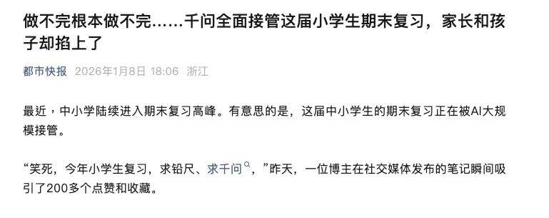以前我们送孩子试卷当礼物,是希望他们多刷题;现在孩子“求千问”,是希望AI帮他们刷题。不管是教还是学,AI都是辅助的法宝,主体还得是人。关键不在工具本身,在于你怎么把它塞进日常生活里。