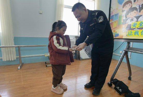 活动伊始,民警针对幼儿认知特点,精心设计了“动画+互动“的安全小课堂。“红灯停、绿灯行,黄灯亮了等一等!”民警通过播放卡通交通安全短片,结合“过马路要牵好大人的手““不在马路上追逐打闹“等生活场景,用童趣化语言讲解“一停二看三通过“的通行规则;通过情景模拟“陌生人给糖果怎么办“,教会幼儿牢记“不跟陌生人走、不吃陌生食物、大声呼救找警察“的自护口诀;围绕“身体红绿灯”概念,引导孩子们认识隐私部位,学会拒绝不好的触碰。课堂上,孩子们踊跃举手回答问题,在轻松氛围中把安全知识牢牢记在心间。