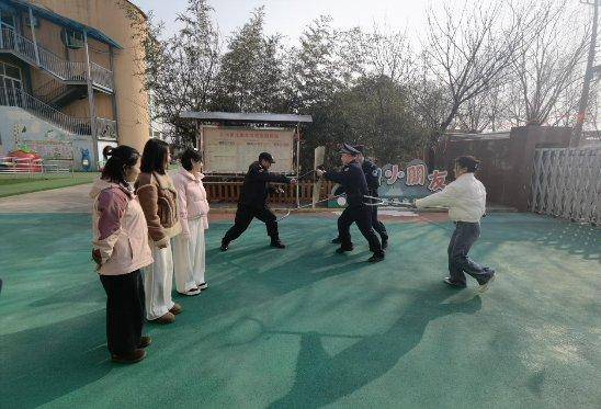 为检验幼儿园应急处置能力,民警与园方联合开展了防暴应急演练。演练模拟“不法分子”强行闯入校园的场景,幼儿园迅速启动应急预案,教职工立即组织幼儿疏散躲避,民警现场指导正确应对方法,演示防暴器械使用技巧,并讲解应急防暴常识。整个演练过程紧张有序,有效提升了师生的应急反应和协同处置能力。