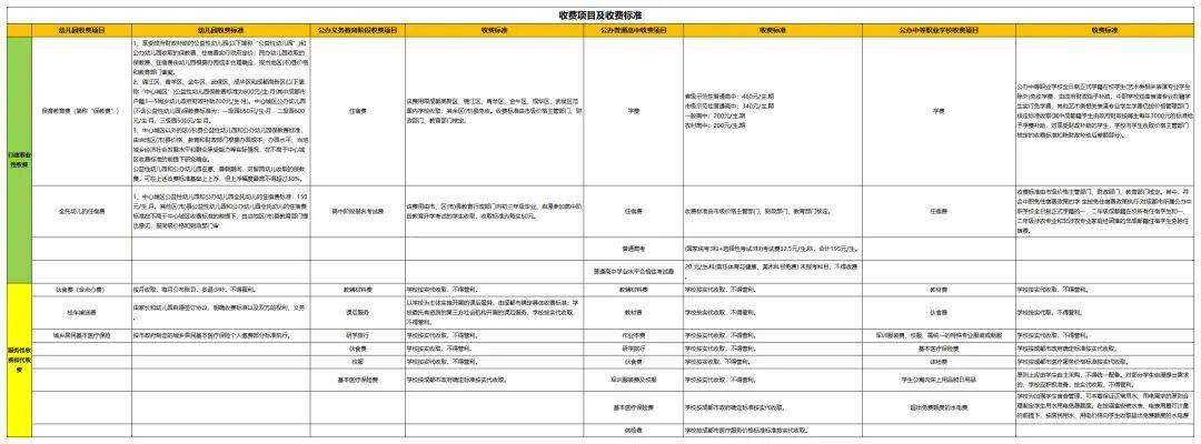 住宿费:该费用限成都高新区、锦江区、青羊区、金牛区、成华区、武侯区范围内学校收取,其余区(市)县免收。收费标准由市级价格主管部门、财政部门、教育部门核定。