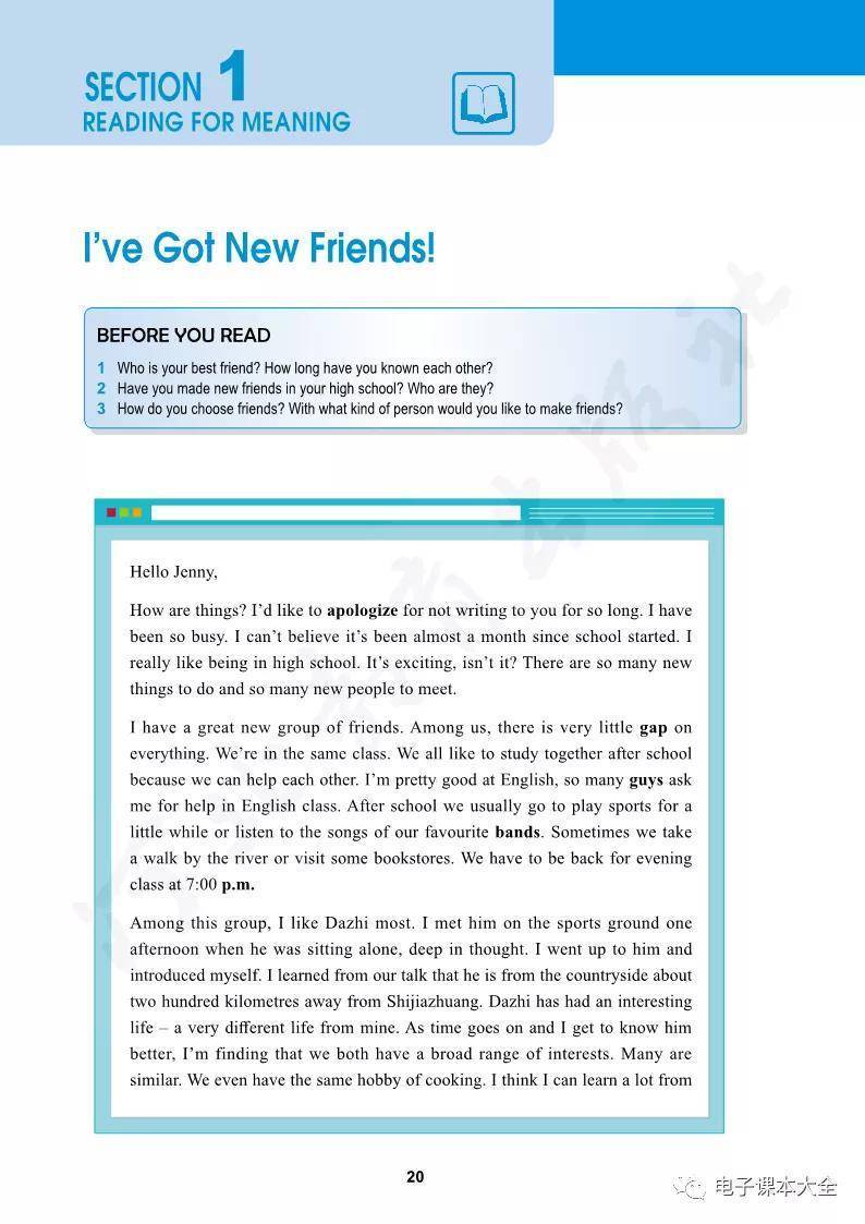 冀教版高中英语必修一电子课本在线阅读