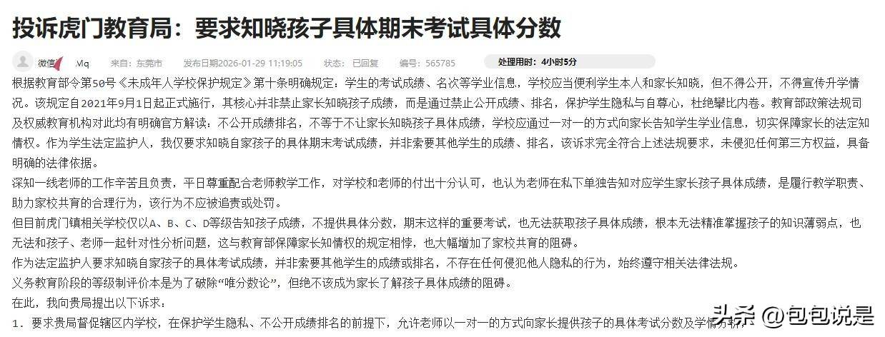 最近东莞虎门一个小学六年级的数学卷子,闹得满城风雨。老师照常手写分数,让孩子带回家让家长签字,结果有家长去问政平台投诉,说孩子心理压力大,怕被比,怕没面子。教育局反应很快,马上叫停手写分数,改成ABCD等级,还查了课堂纪律。可没想到,后面蜂拥而来的留言全是家长在问:“就只能看到个B?我娃到底考了多少?差几分满分?错哪几道?”