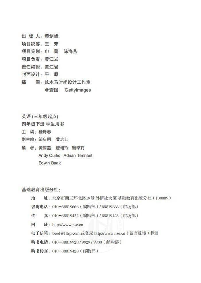 外研社新交际版四年级英语下册电子课本图片版在线阅读