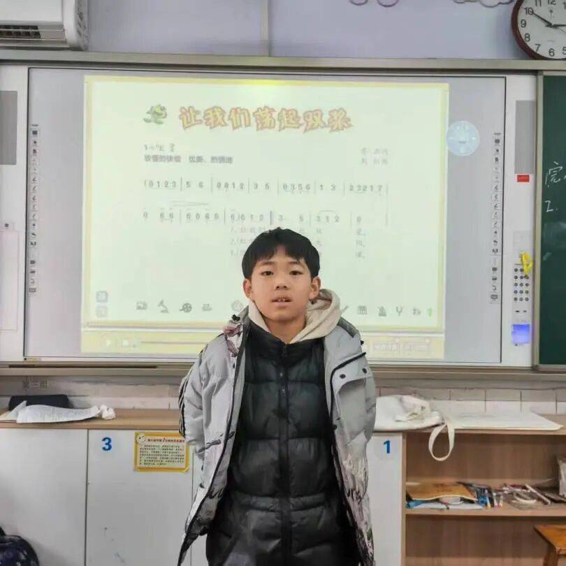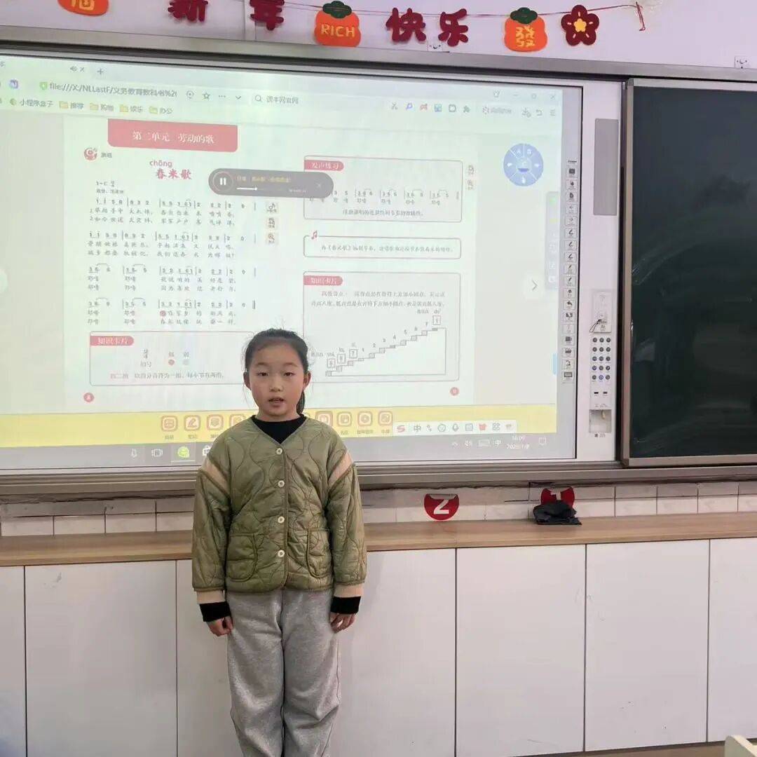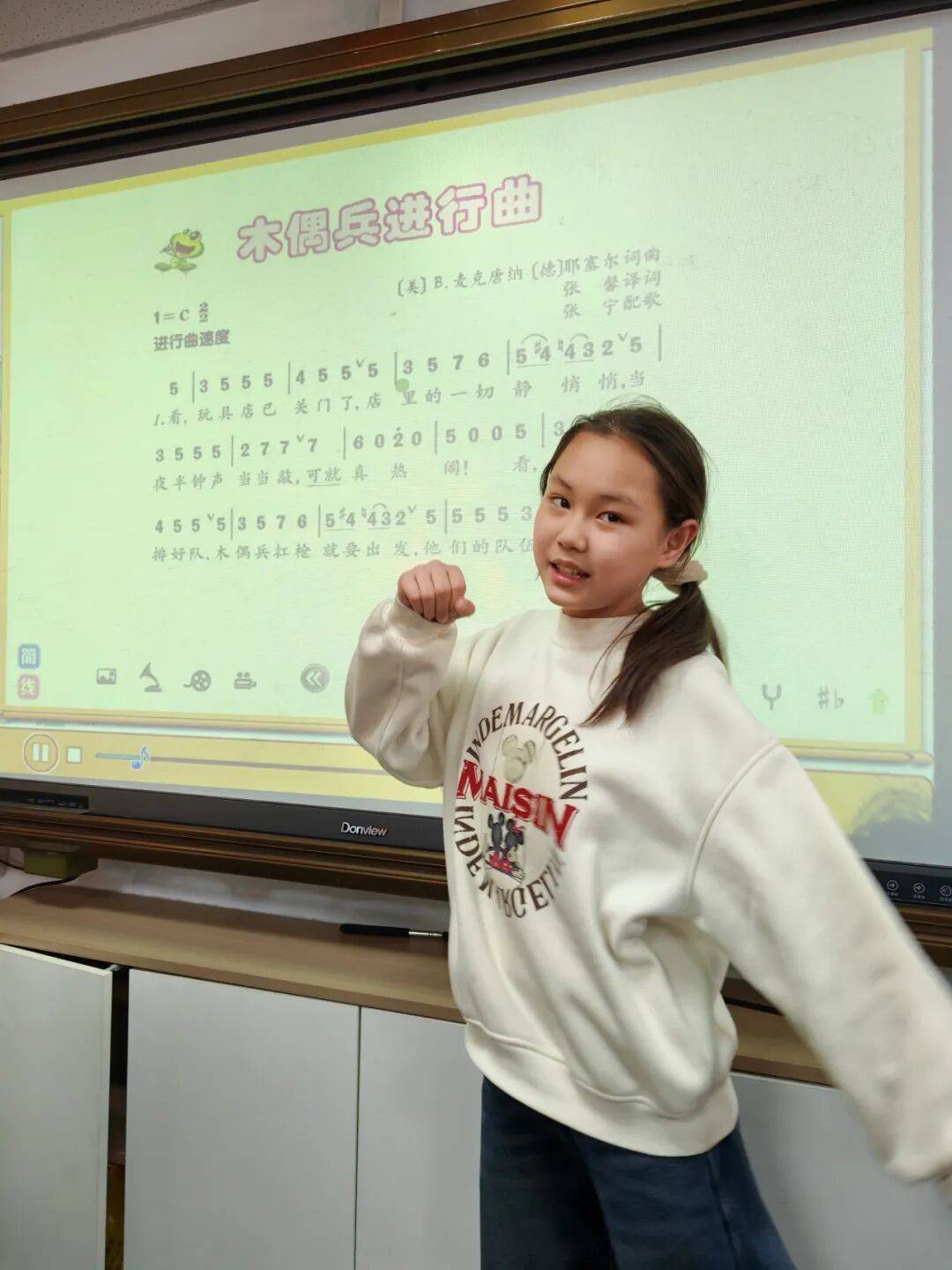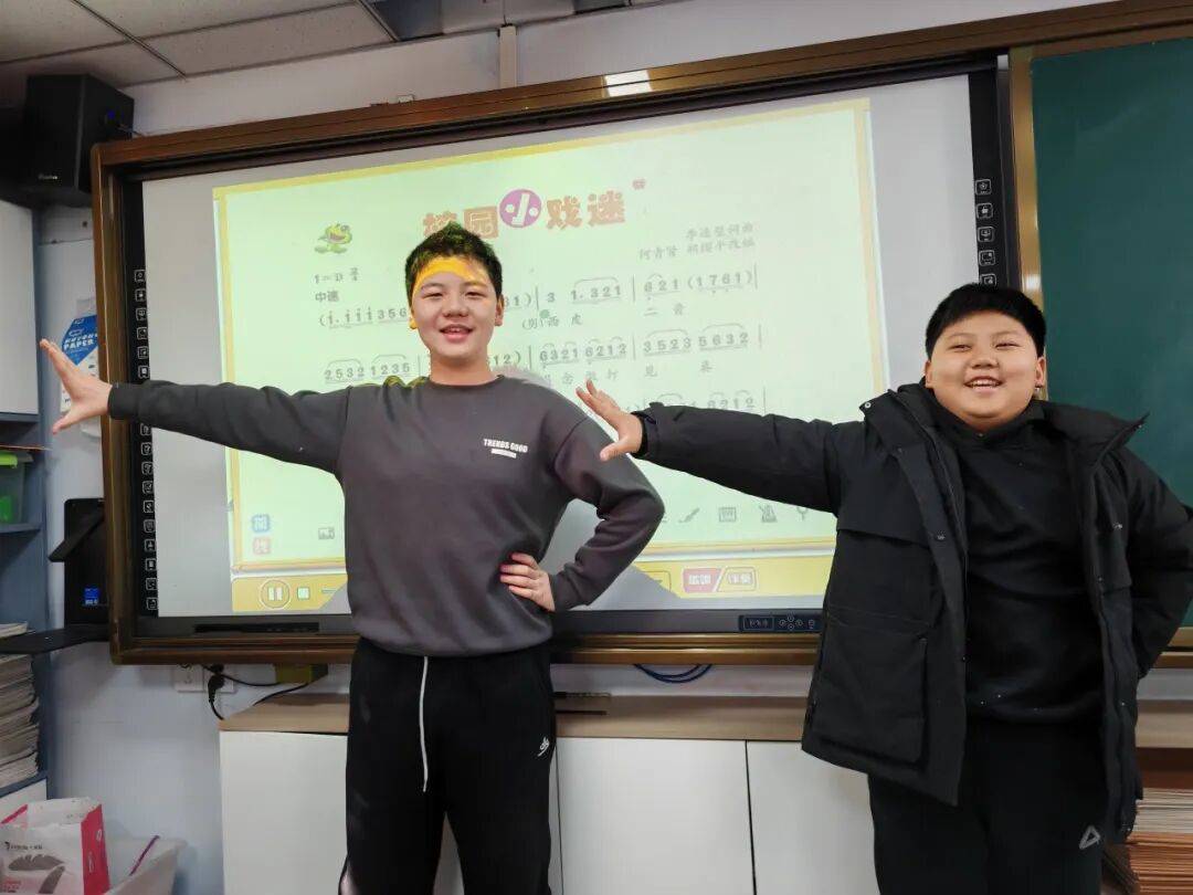 歌声袅袅,律动翩翩,音乐教室里满是童真与热爱!三、六年级学子抽取歌曲伴乐演唱,时而激昂时而轻柔,准确把握节奏与情绪,双人二声部合唱更显默契;四年级同学自选课本歌曲,用响亮的歌声搭配自然动作,展现自信风采;五年级的“快乐五分钟”舞台超热闹,唱歌、跳舞、乐器演奏、朗诵轮番上阵,创意十足的表演让人眼前一亮,还有即兴律动加分项点燃创意火花!