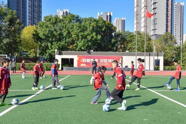 北京市昌平区育新科星路小学自2022年建校伊始,全力营造浓郁的足球文化氛围。学校打造足球普惠课程,巧妙融合足球基础技能训练与趣味体育游戏,每学期如期举办足球班级联赛与趣味足球挑战赛,确保同学100%参与其中,让足球的魅力深植于同学心中。