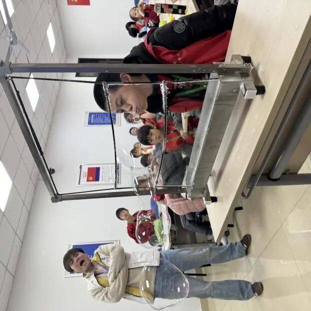 汉字游戏与科学实验嗨翻全场:“汉字猜猜乐”通过字形拆解、偏旁组合,让孩子们在抢答中感受中华文字之美;“陆海空”主题手工课上,“森林密语”“太空小创客”等作品创意十足;泡泡实验室里,梦幻的泡泡秀和趣味实验,带孩子们探索物理与化学的神奇世界。